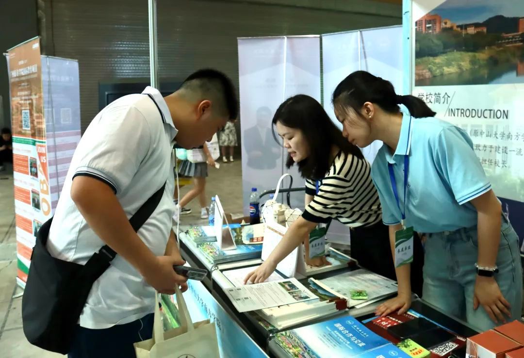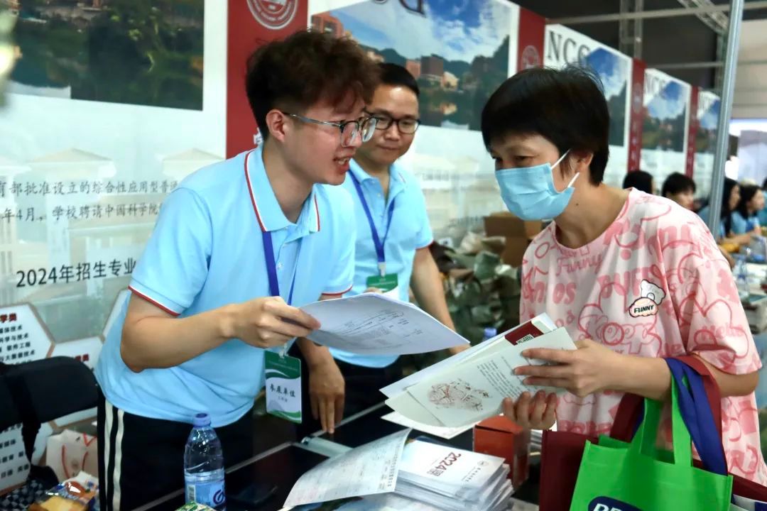 “我大女儿两年前考上了UIC(北京师范大学-香港浸会大学联合国际学院),今年轮到小女儿参加高考,这两天帮她搜集志愿填报信息,来到你们展位,一看到汤涛院士就觉得很亲切。如果她愿意,今年首先会考虑来南方学院就读。”